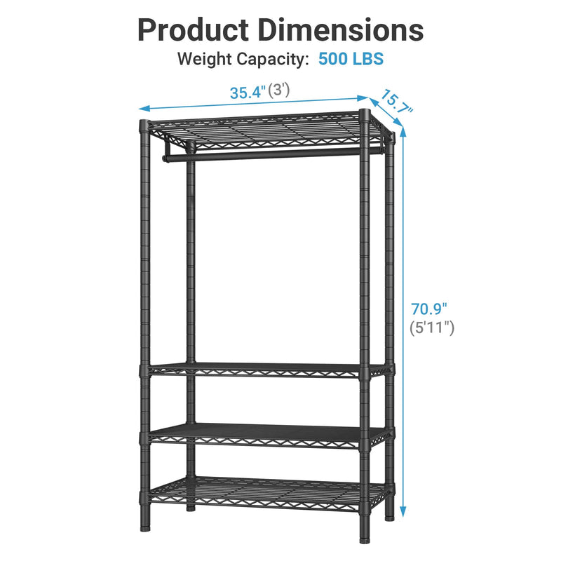 - MULTIFUNCTION: VIPEK V1 Clothes Rack ensure you enough space to place your clothes, accessories, bedding, lining, shoes, etc. Single clothes hanging rod holds up to 90 lbs, it is great for hanging suits, coats, long dresses, jackets, pants, shirts or other heavy clothes.