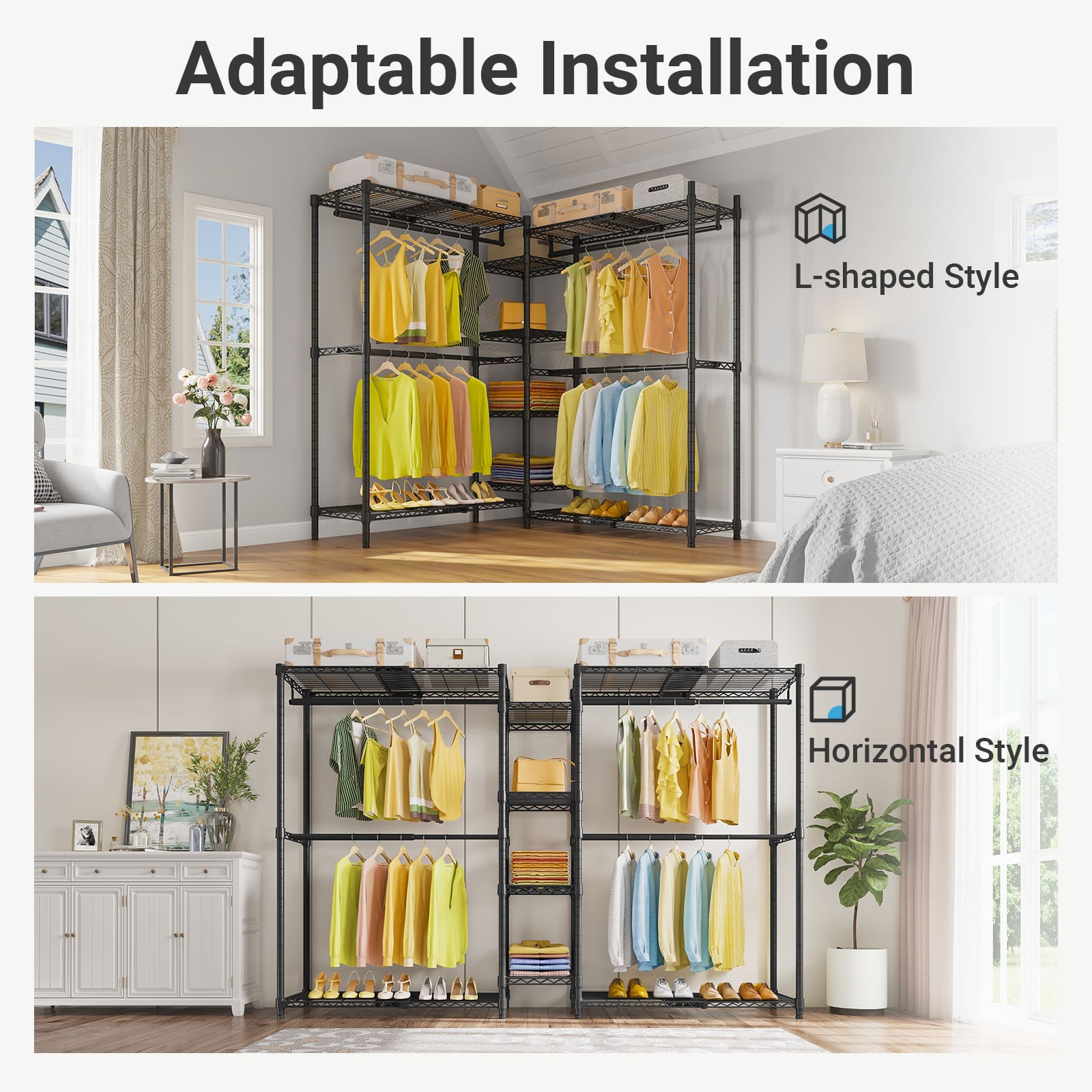 - DIY Closet Installation: VIPEK X3 garment rack can be assembled in 2 shapes for different types of rooms. The horizontal assembly way for the reach-in and walk-in closet, and the L shape for the corner space